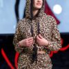 Bluza cu glugă oferă o notă sportivă și casual, în timp ce pantalonii mulați se așează confortabil pe corp.